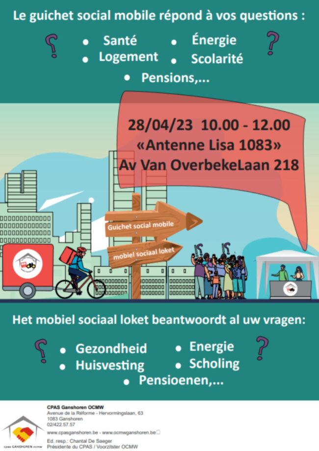 Afspraak op 28 april bij de Lisa Antenne Van Overbecklaan, 218 van 10:00 tot 12:00 uur. Het mobiel sociaal loket zal al uw vragen beantwoorden!