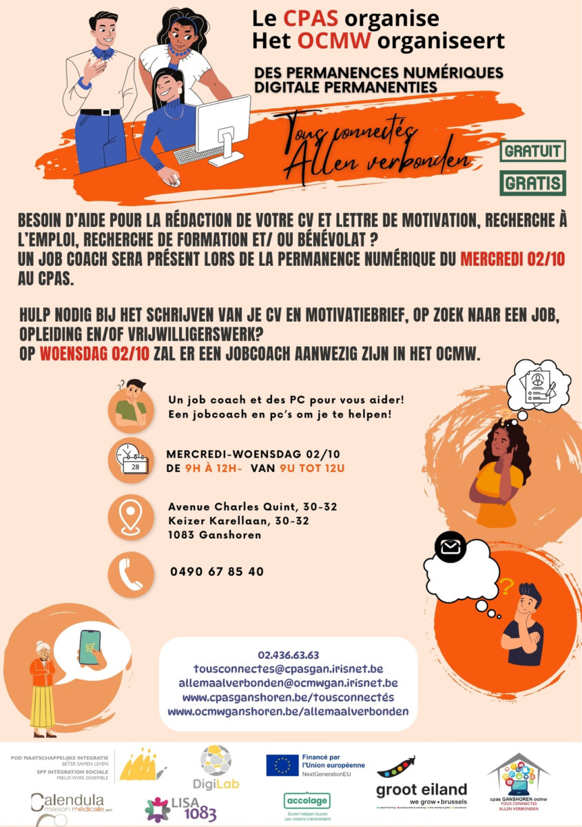 Een job coach zal aanwezig zijn op woensdag 02/10!