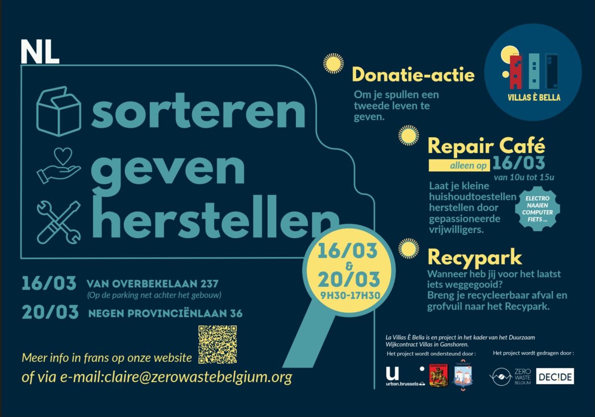 Op 16 en 20 maart, van 9u30 tot 17u30, organiseert de vereniging Zero Waste Belgium, naast de Recypark Mobile van Net Brussel, een geefplein (donnerie) om zoveel mogelijk nog bruikbare voorwerpen te verzamelen die bewoners van plan zijn weg te gooien.