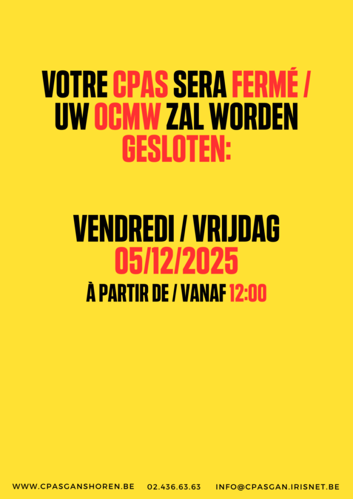 Sluiting van uw OCMW op vrijdag 05/12 (12u)